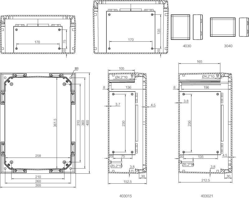 | 400x300x210 | 8120007 | ARCA 403021 | 8120087 |