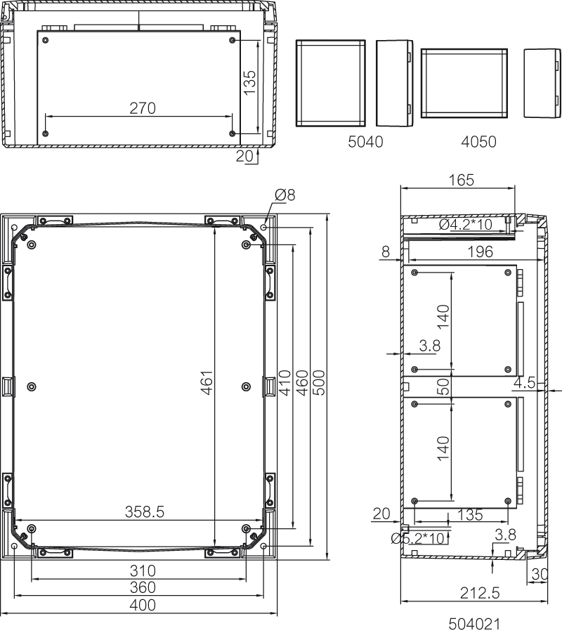 | 500x400x210 | 8120011 | ARCA 504021 | 8120091 |
