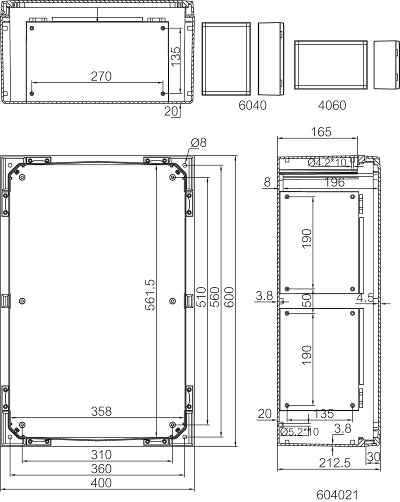 | 400x600x210 | 8120026 | ARCA 406021 | 8120106 | ARCA 406021S | 8120146 | ARCA 406021W |