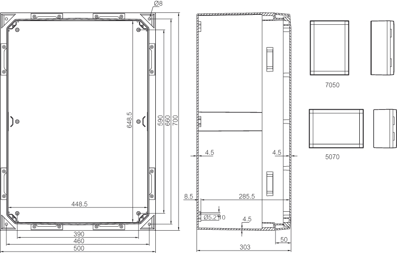 | 500x700x300 | 8120031 | ARCA 507030 | 8120111 | ARCA 507030S | 8120151 | ARCA 507030W |