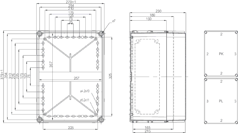 | 380x280x230 | 2538058 | EKPK 230 G | 2538158 | EKPK 230 T | |