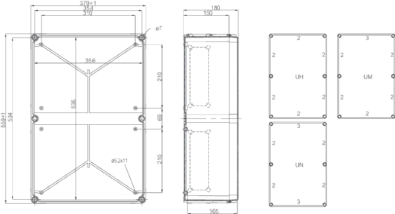 | 560x380x180 | 2538073 | EKUH 180 G | 2538173 | EKUH 180 T | Peremnyílások méretei: |
