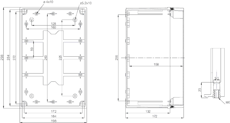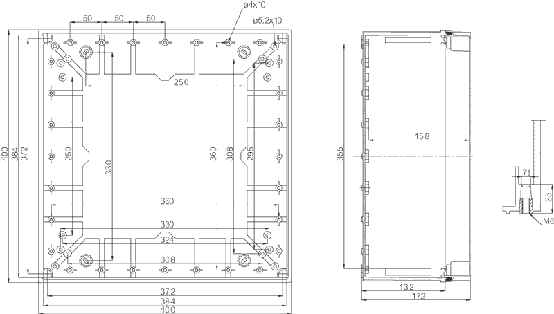 megjelenik a méretrajz egy külön ablakban. - Az adatok külső befoglaló méreteket jelentenek. - A CAB PC/ABS 44 típushoz 100 mm-es magasító keret is rendelhető. |